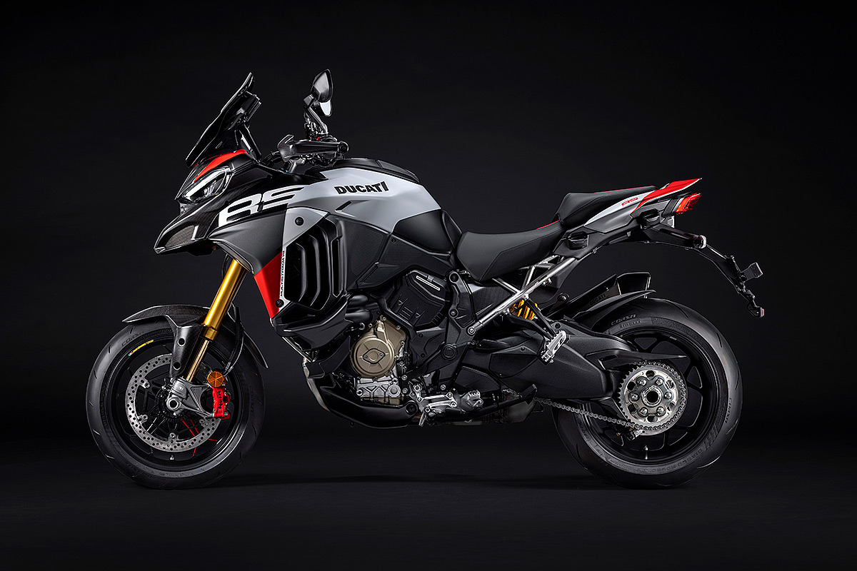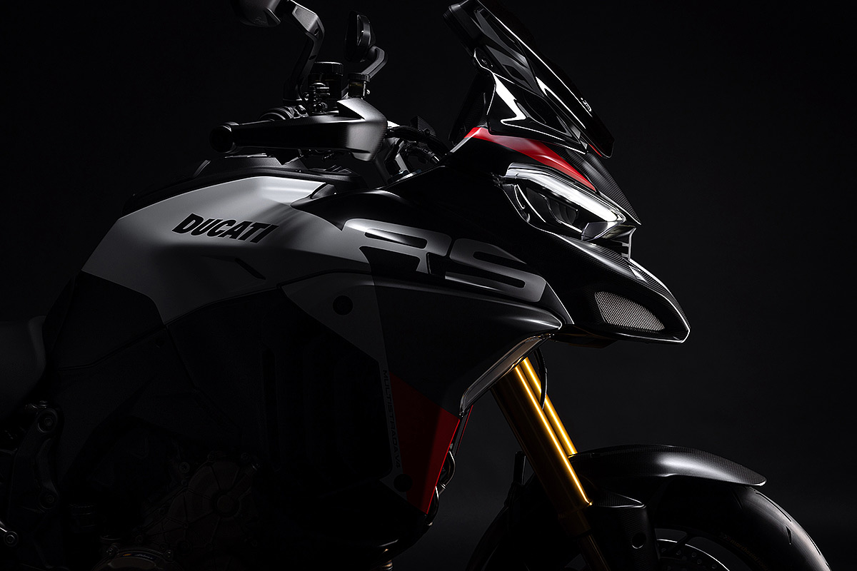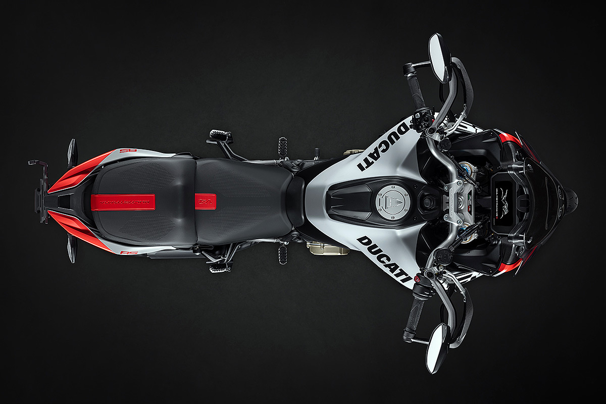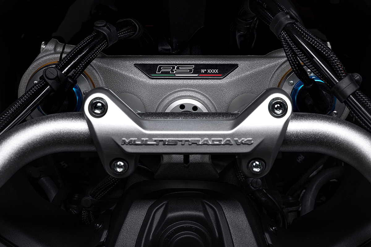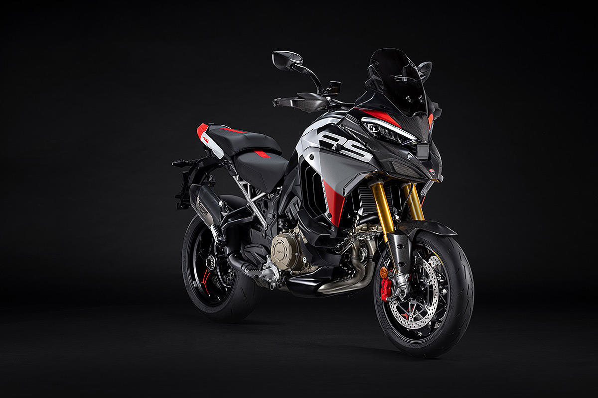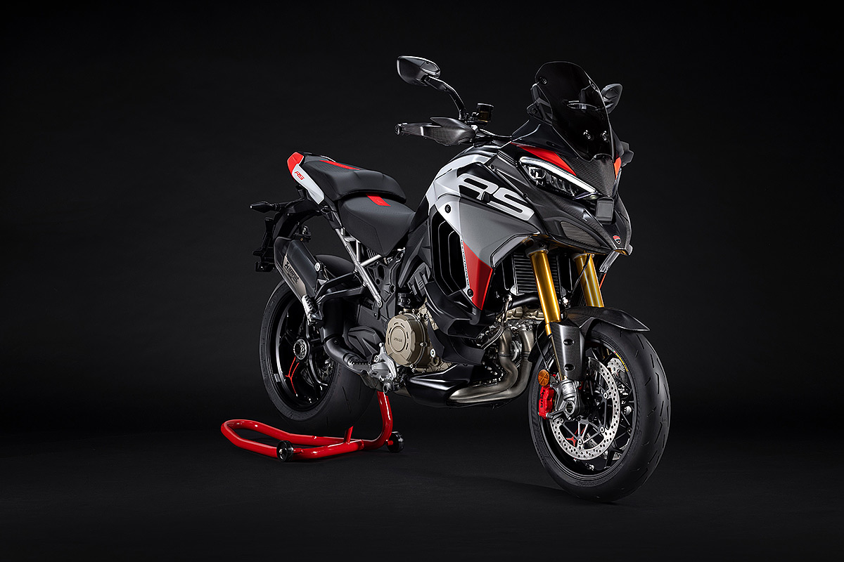 Die Multistrada V4 RS ist das sportlichste, anspruchsvollste und exklusivste Mitglied der Multistrada-Familie, die in diesem Jahr ihr 20-jähriges Bestehen feiert. Ausgestattet mit dem beeindruckenden Desmosedici Stradale-Motor, der vom Motor der Panigale V4 abgeleitet wurde, wird sie in einer nummerierten Auflage hergestellt. Der V4-Motor mit desmodromischer Ventilsteuerung verhilft der Multistrada V4 RS zu einzigartigen Fahrleistungen mit der Multistrada typischen Ausgewogenheit. Der unverkennbare Klang des Desmosedici Stradale, begleitet vom Sound der Trockenkupplung und des Akrapovič-Schalldämpfers Sorgen auch für ein akustisches Erlebnis. Die Auswahl der Komponenten zeigen das Ziel auf: das sportlichste Tourenmotorrad aller Zeiten zu schaffen. Anspruchsvolle Motorradfahrer werden die technischen und stilistischen Details schätzen, die dieses Modell zu einem einzigartigen Motorrad mit unverkennbarer Persönlichkeit machen.