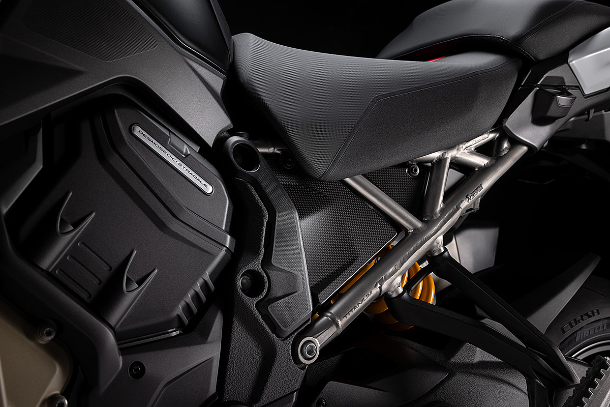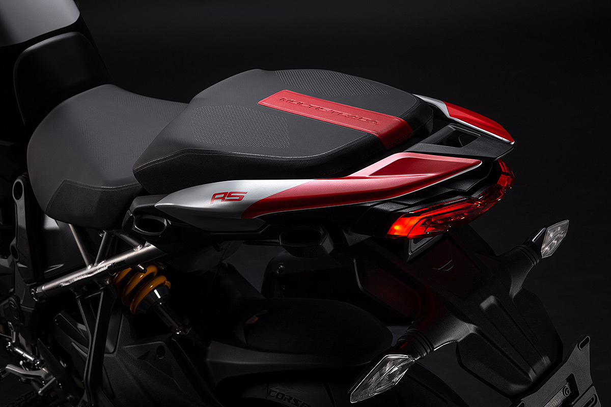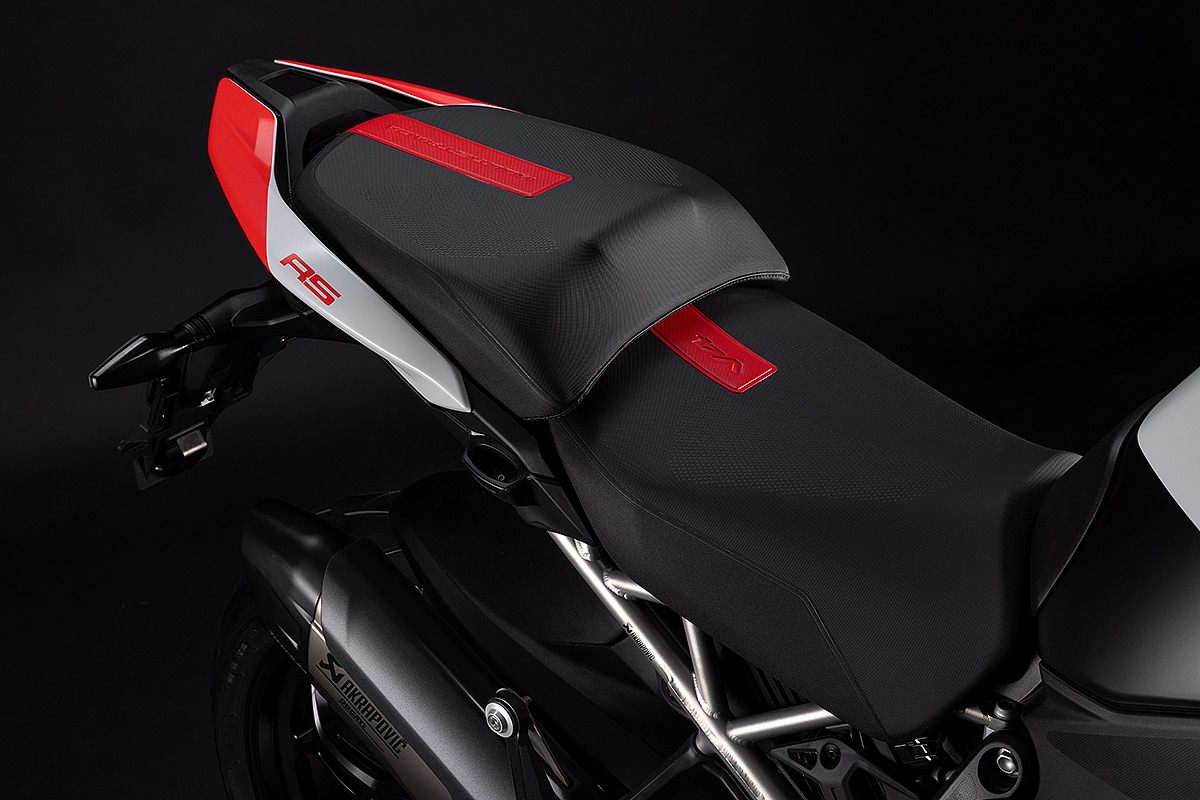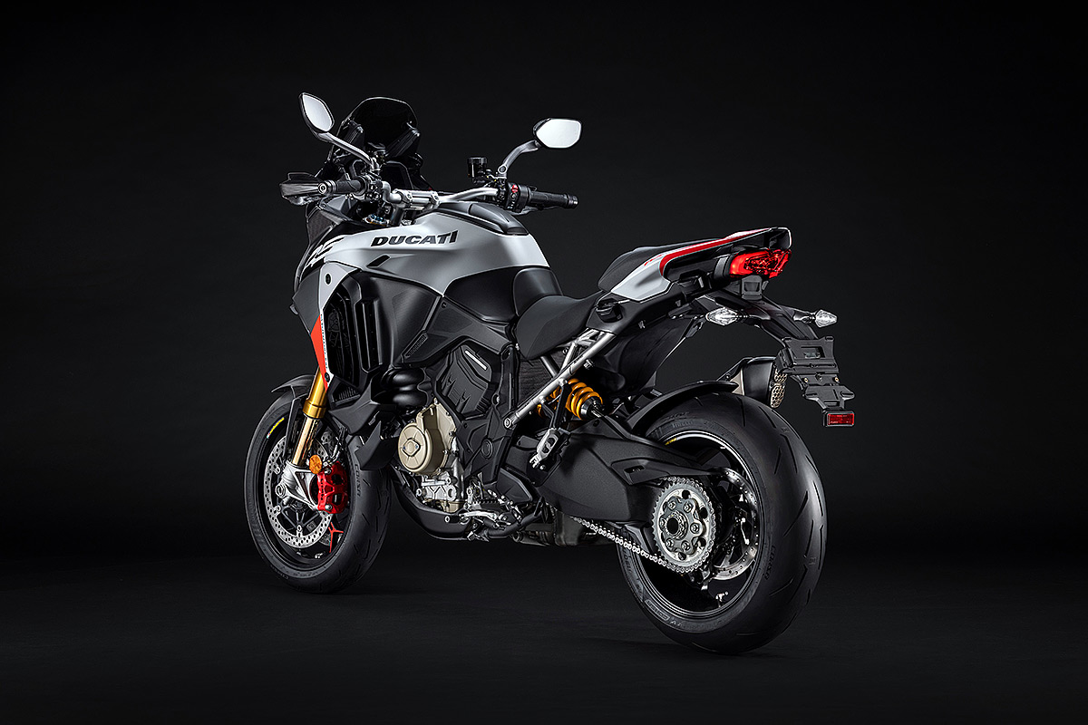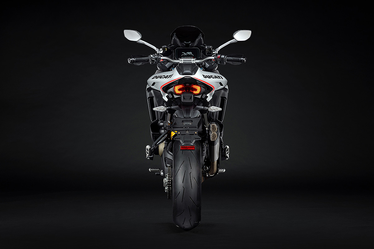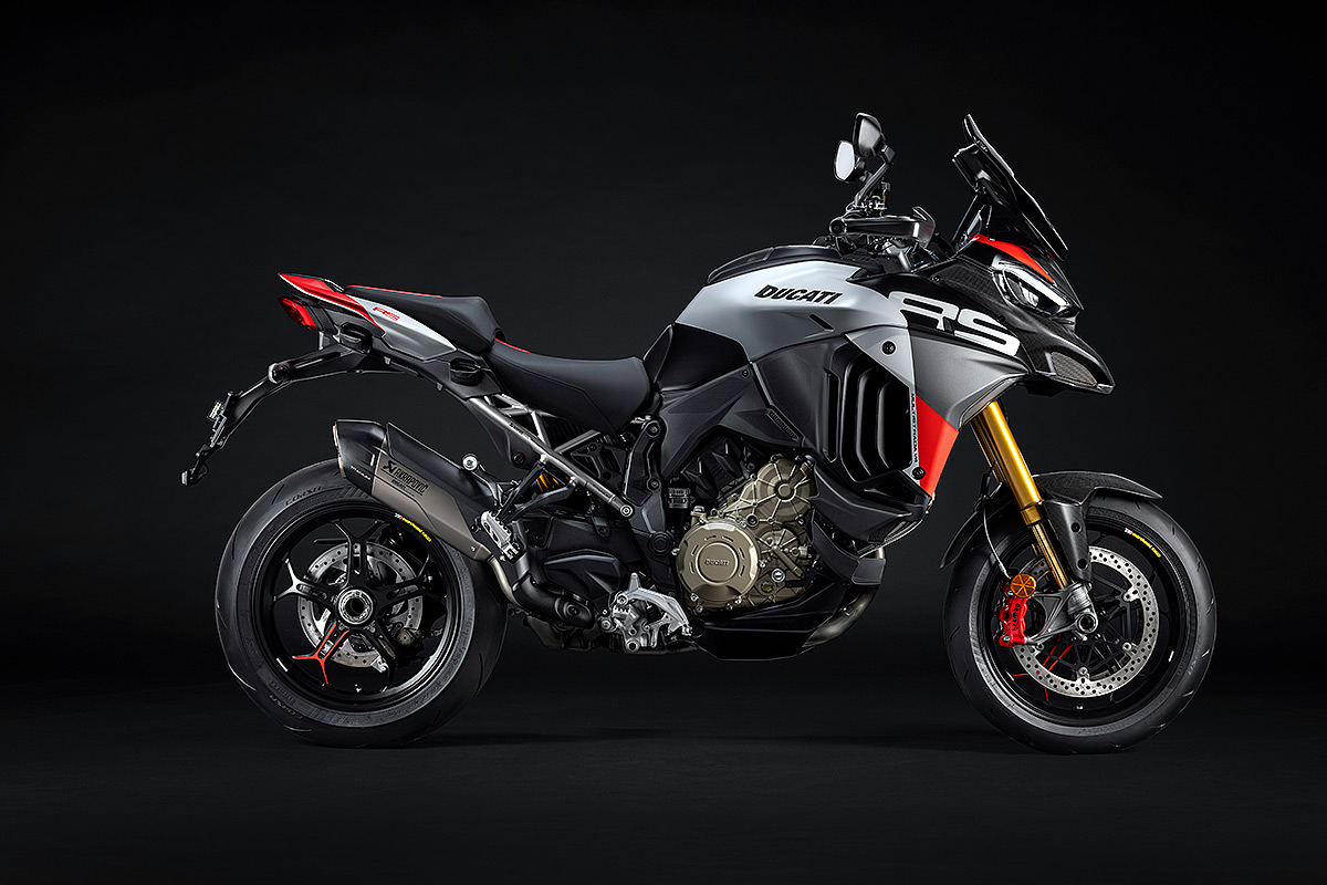 Die Multistrada V4 RS ist das sportlichste, anspruchsvollste und exklusivste Mitglied der Multistrada-Familie, die in diesem Jahr ihr 20-jähriges Bestehen feiert. Ausgestattet mit dem beeindruckenden Desmosedici Stradale-Motor, der vom Motor der Panigale V4 abgeleitet wurde, wird sie in einer nummerierten Auflage hergestellt. Der V4-Motor mit desmodromischer Ventilsteuerung verhilft der Multistrada V4 RS zu einzigartigen Fahrleistungen mit der Multistrada typischen Ausgewogenheit. Der unverkennbare Klang des Desmosedici Stradale, begleitet vom Sound der Trockenkupplung und des Akrapovič-Schalldämpfers Sorgen auch für ein akustisches Erlebnis. Die Auswahl der Komponenten zeigen das Ziel auf: das sportlichste Tourenmotorrad aller Zeiten zu schaffen. Anspruchsvolle Motorradfahrer werden die technischen und stilistischen Details schätzen, die dieses Modell zu einem einzigartigen Motorrad mit unverkennbarer Persönlichkeit machen.