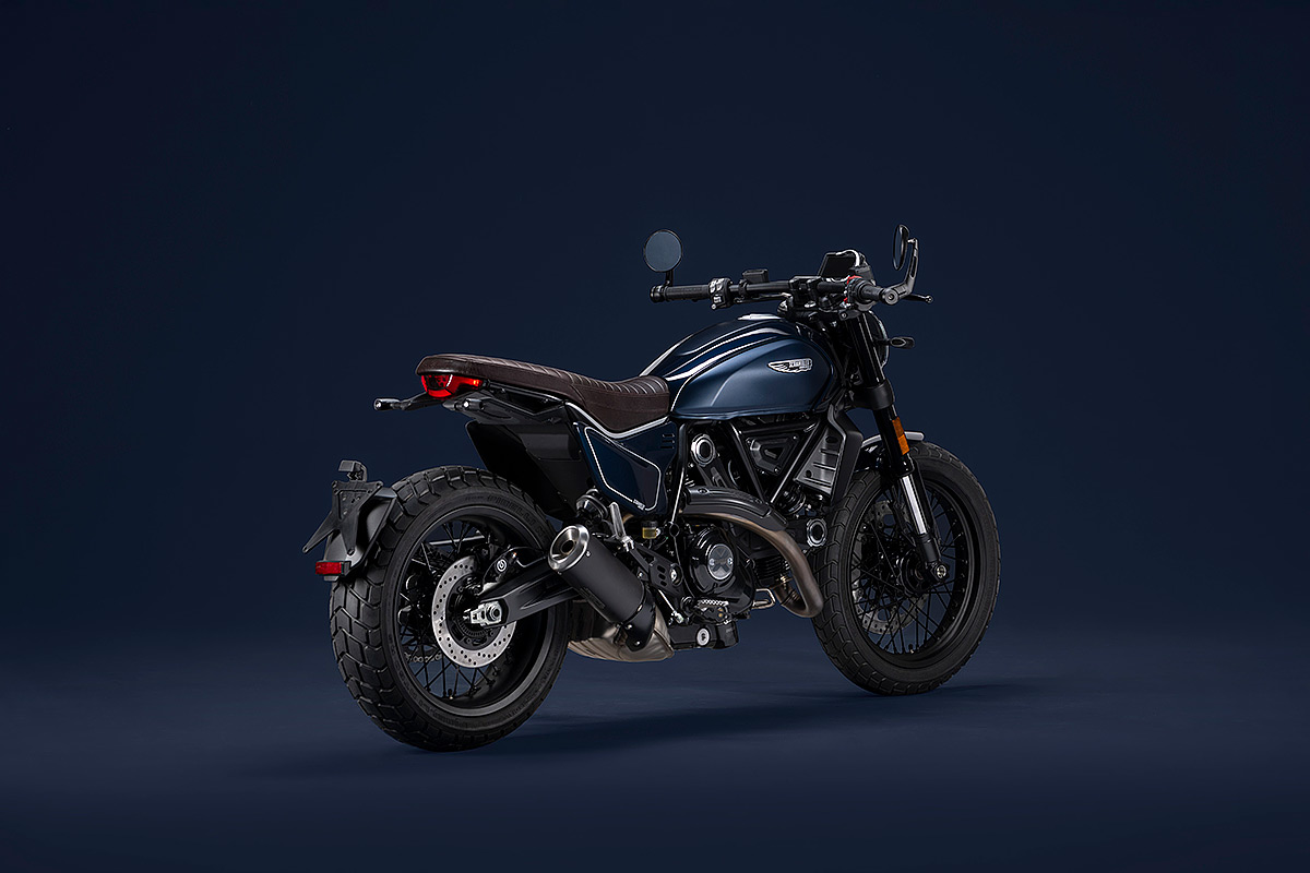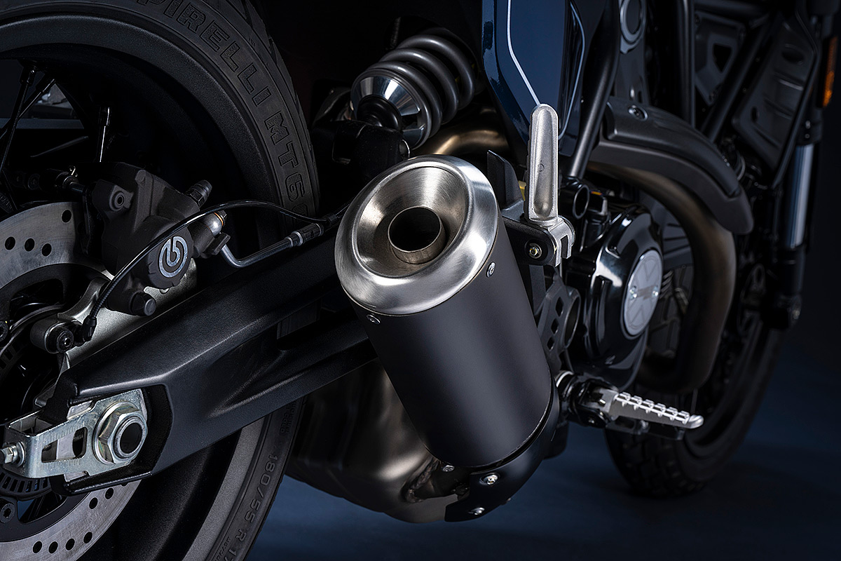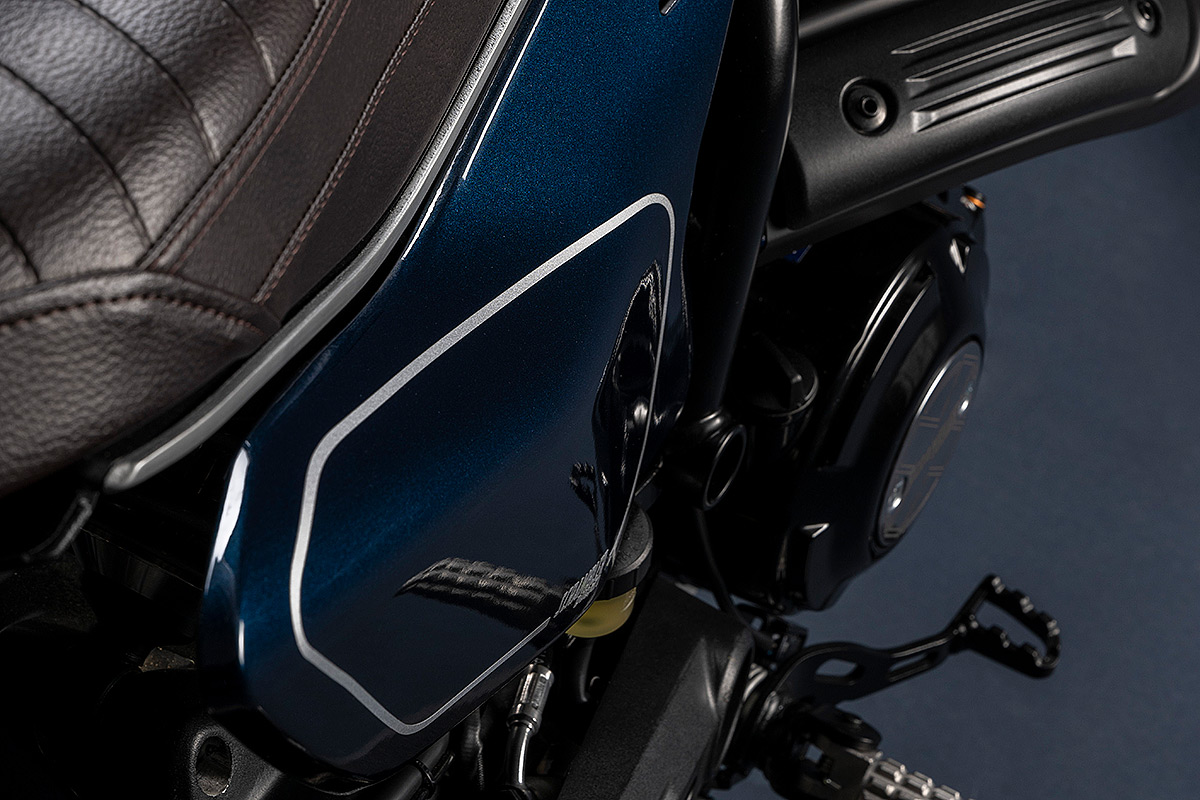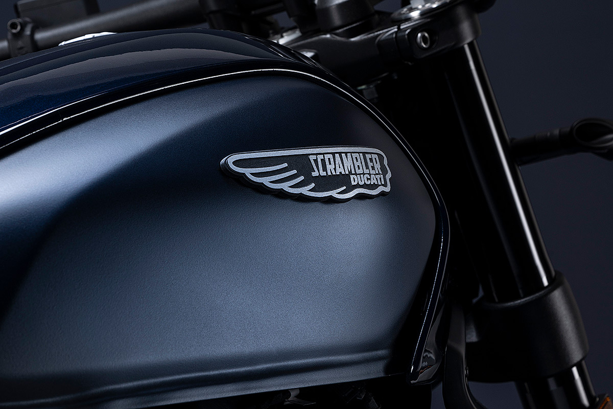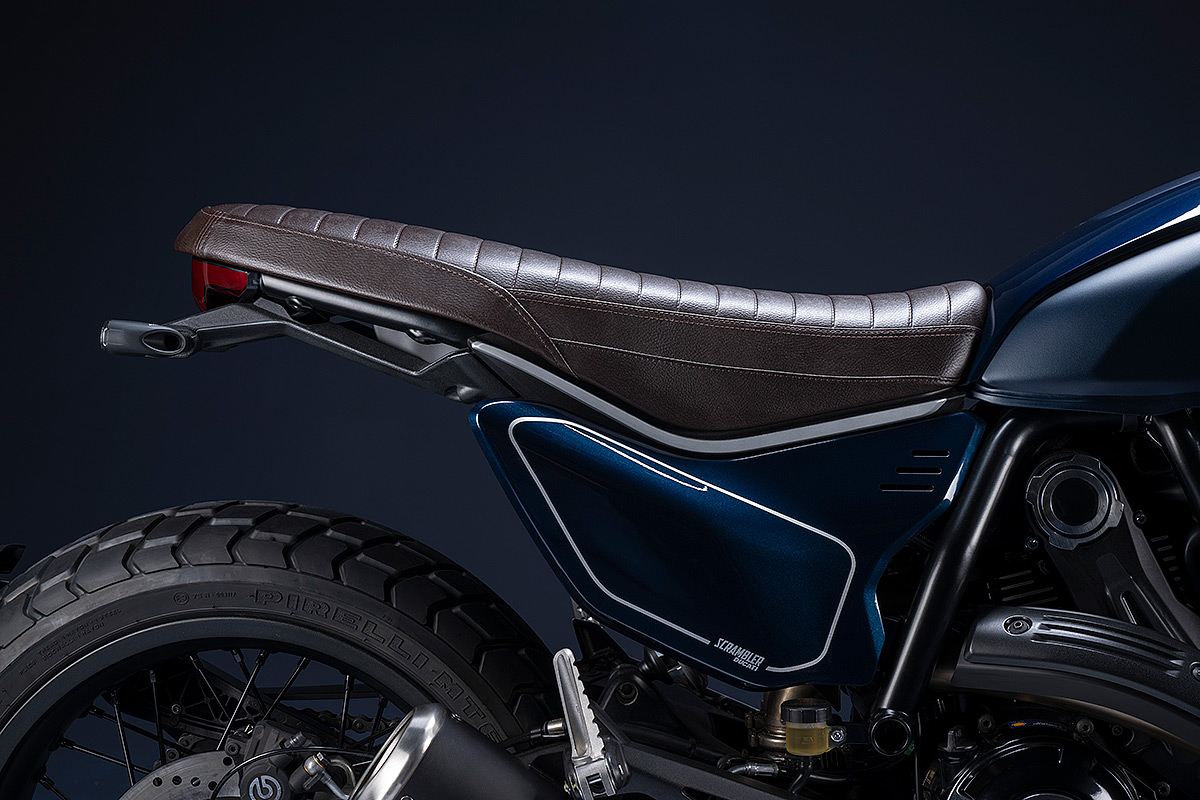 Um die eigene Geschichte neu zu schreiben, muss man manchmal die Vorspultaste drücken. Genau das hat Ducati mit dieser neuen Scrambler Generation getan, die zeitgemäßer, bunter und ein kleines bisschen respektloser ist. Future comes at night. Die neue Generation der Scrambler Nightshift ist da. Ihre elegante Seele umfasst das neue, frische Design der Scrambler Familie mit der eleganten Note eines Street-Racers, ergänzt durch die unverwechselbare Farbe Nebula Blue und die komplett schwarzen Aluminium-Speichenräder, die der Nightshift 2G einen Straßen-Glamour-Look verleihen. Die Sportlichkeit wird durch die am Lenkerstummel außen montierten Rückspiegel, dem niedrigsten Lenker aller Scrambler Modelle, dem kurzen Heck mit den Ducati Performance LED-Blinkern, den Startnummernfelder und dem stylisch kurzen Kotflügel vorne unterstrichen.