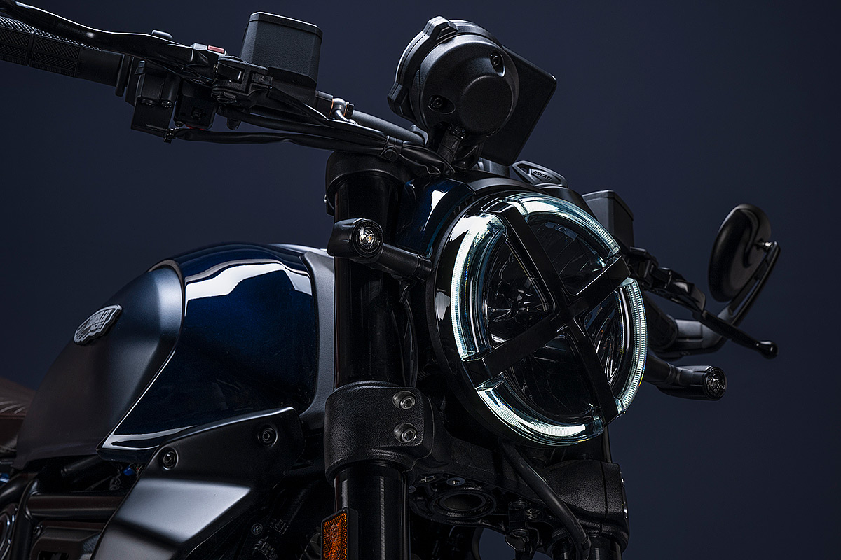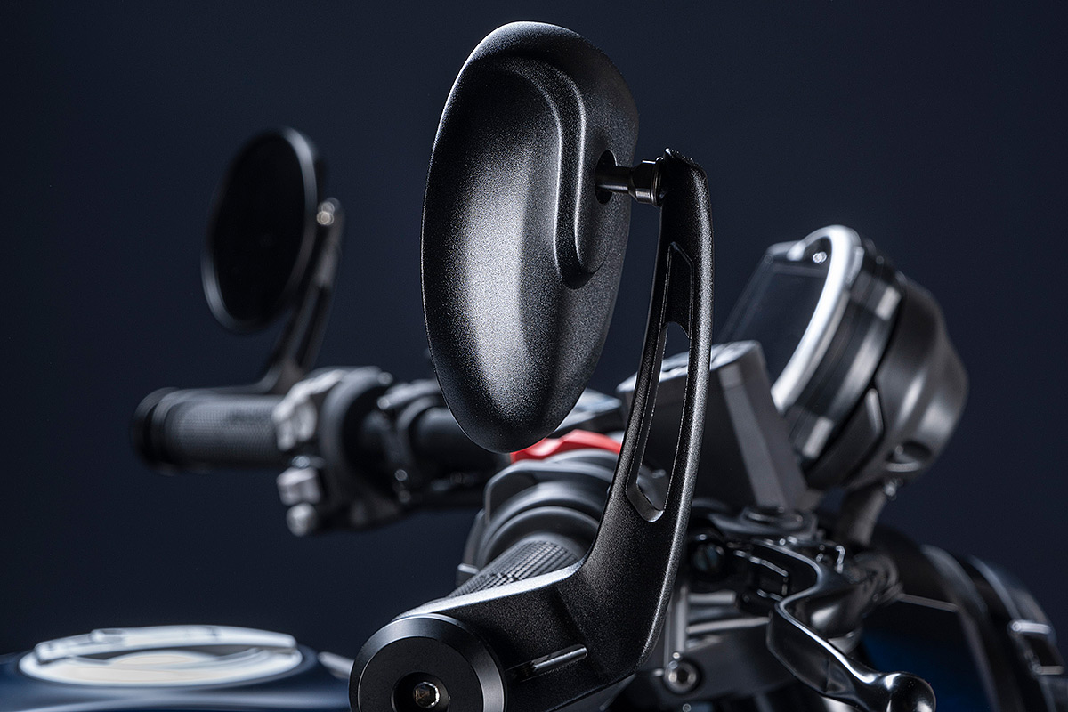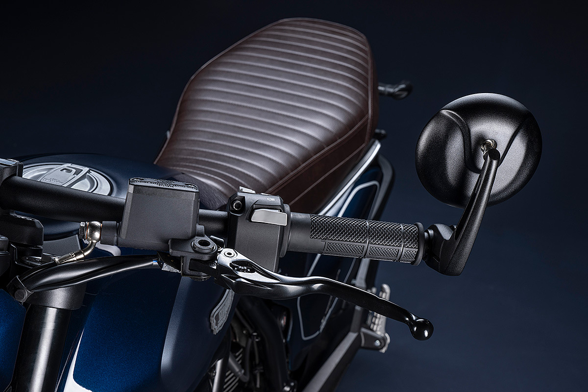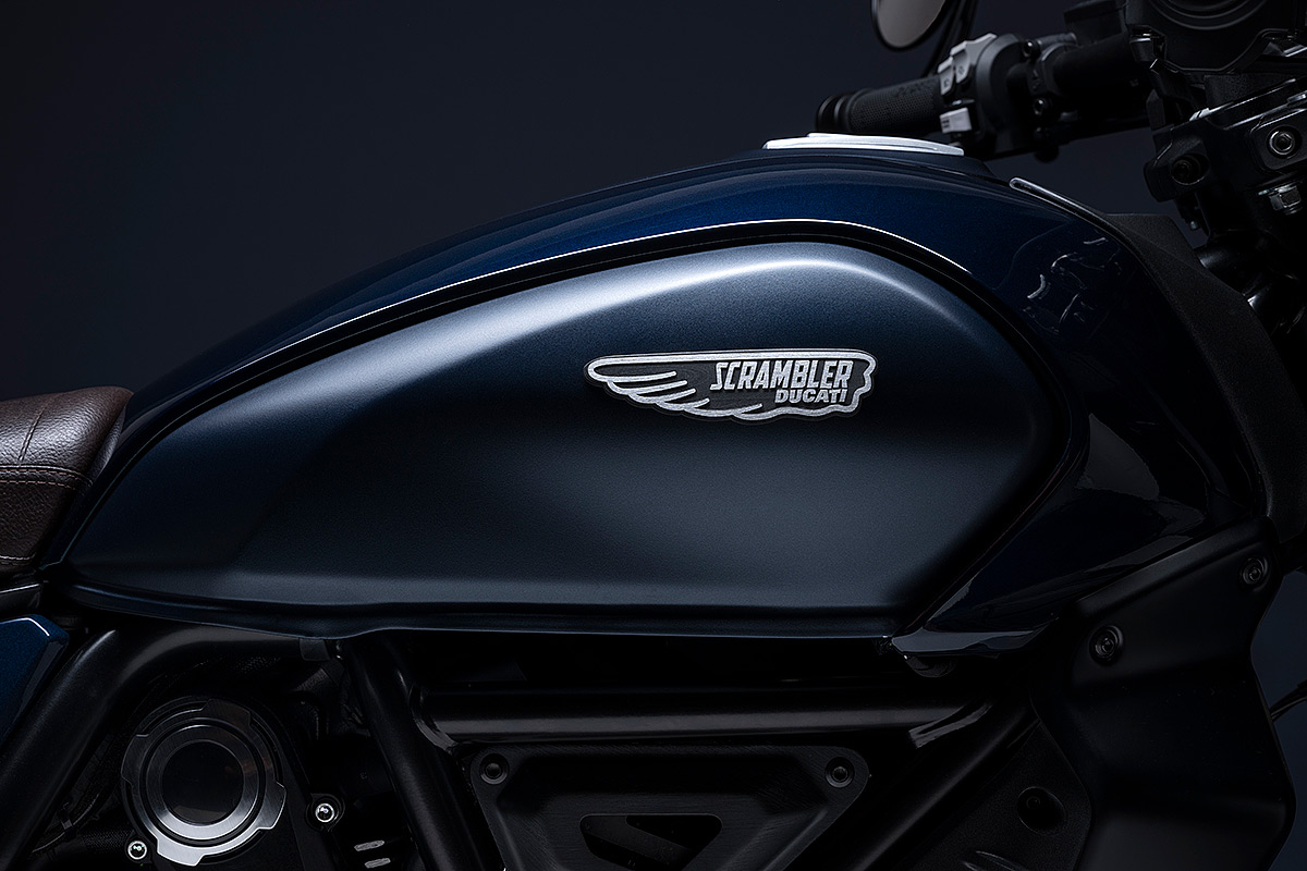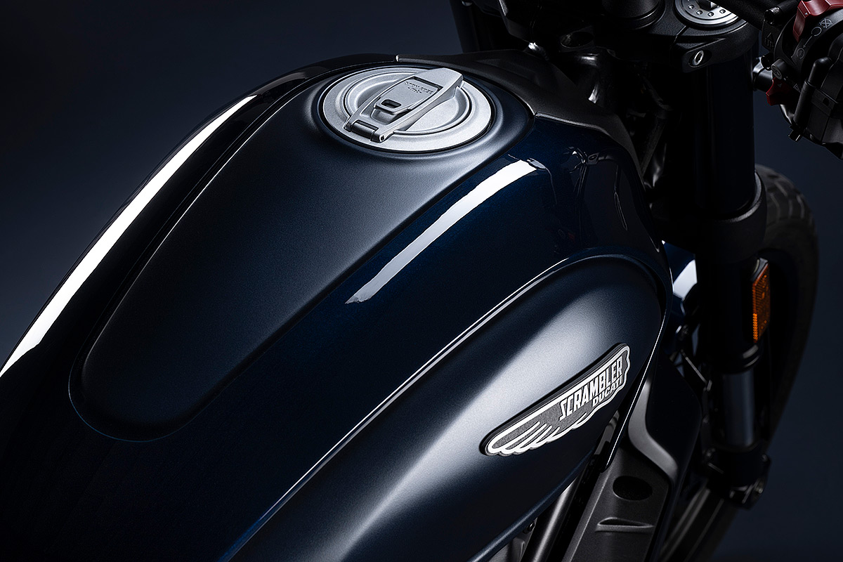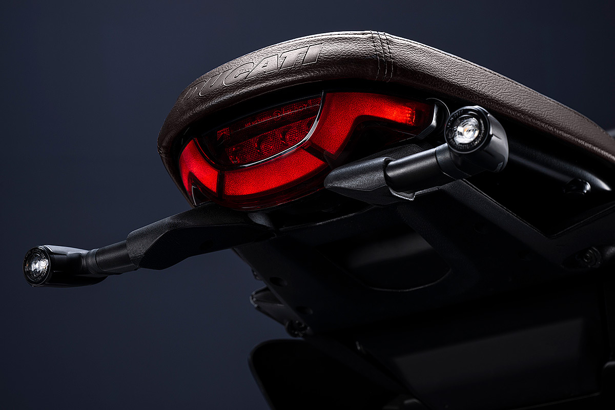Um die eigene Geschichte neu zu schreiben, muss man manchmal die Vorspultaste drücken. Genau das hat Ducati mit dieser neuen Scrambler Generation getan, die zeitgemäßer, bunter und ein kleines bisschen respektloser ist. Future comes at night. Die neue Generation der Scrambler Nightshift ist da. Ihre elegante Seele umfasst das neue, frische Design der Scrambler Familie mit der eleganten Note eines Street-Racers, ergänzt durch die unverwechselbare Farbe Nebula Blue und die komplett schwarzen Aluminium-Speichenräder, die der Nightshift 2G einen Straßen-Glamour-Look verleihen. Die Sportlichkeit wird durch die am Lenkerstummel außen montierten Rückspiegel, dem niedrigsten Lenker aller Scrambler Modelle, dem kurzen Heck mit den Ducati Performance LED-Blinkern, den Startnummernfelder und dem stylisch kurzen Kotflügel vorne unterstrichen.