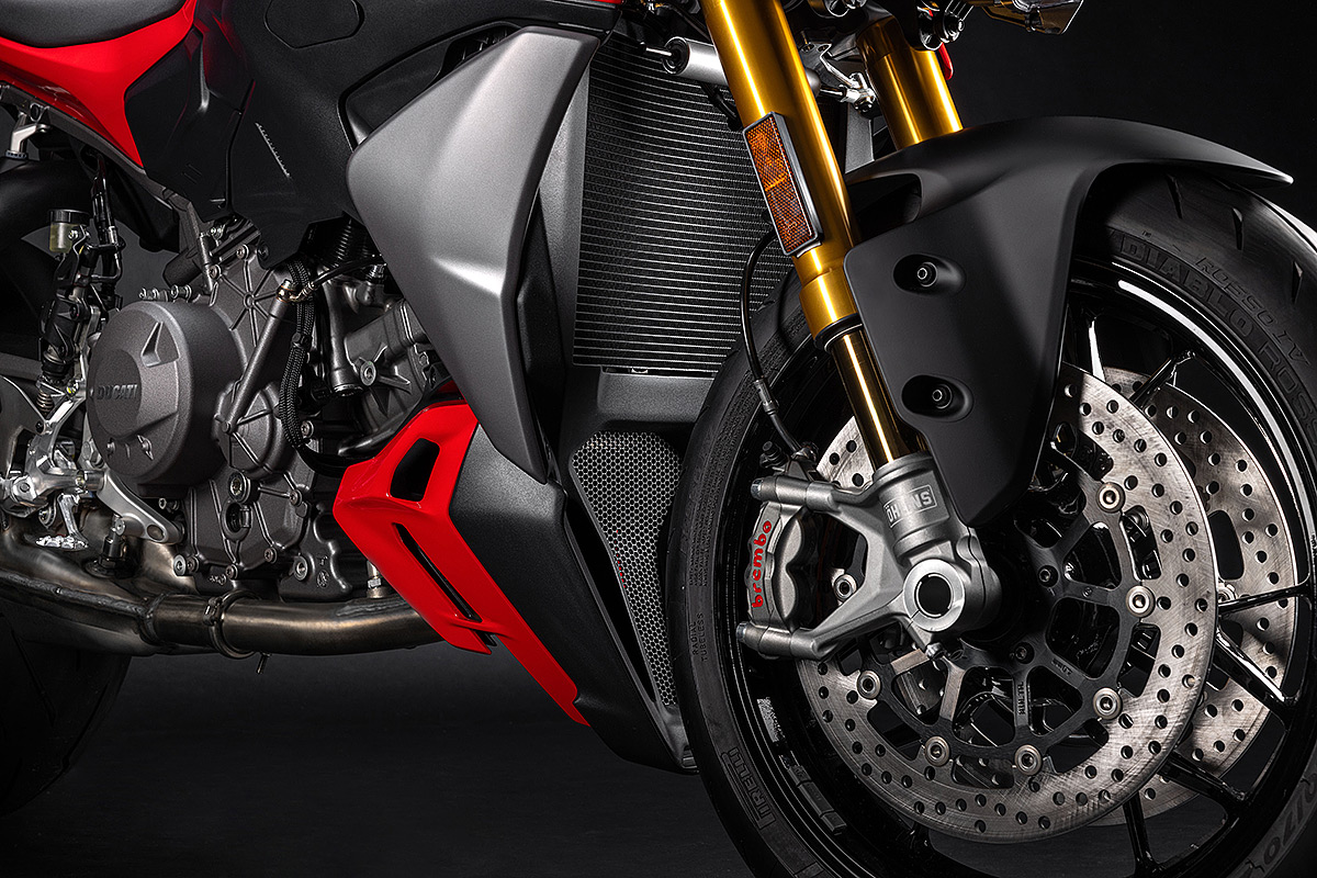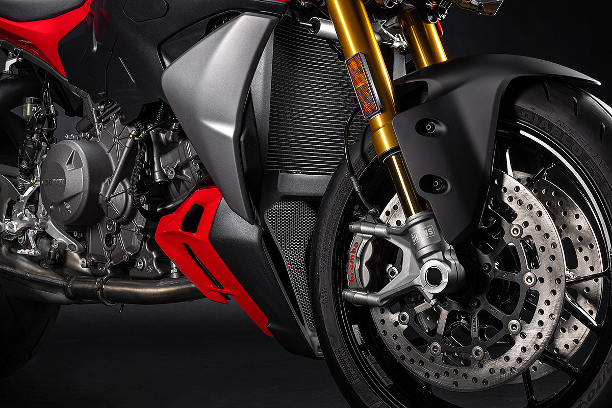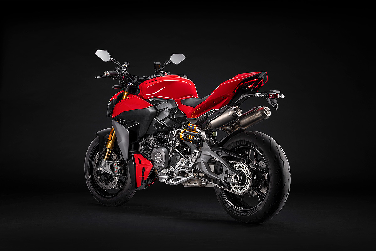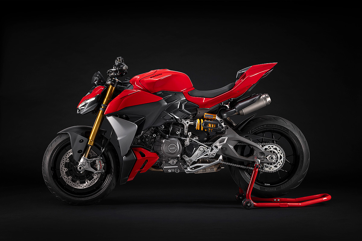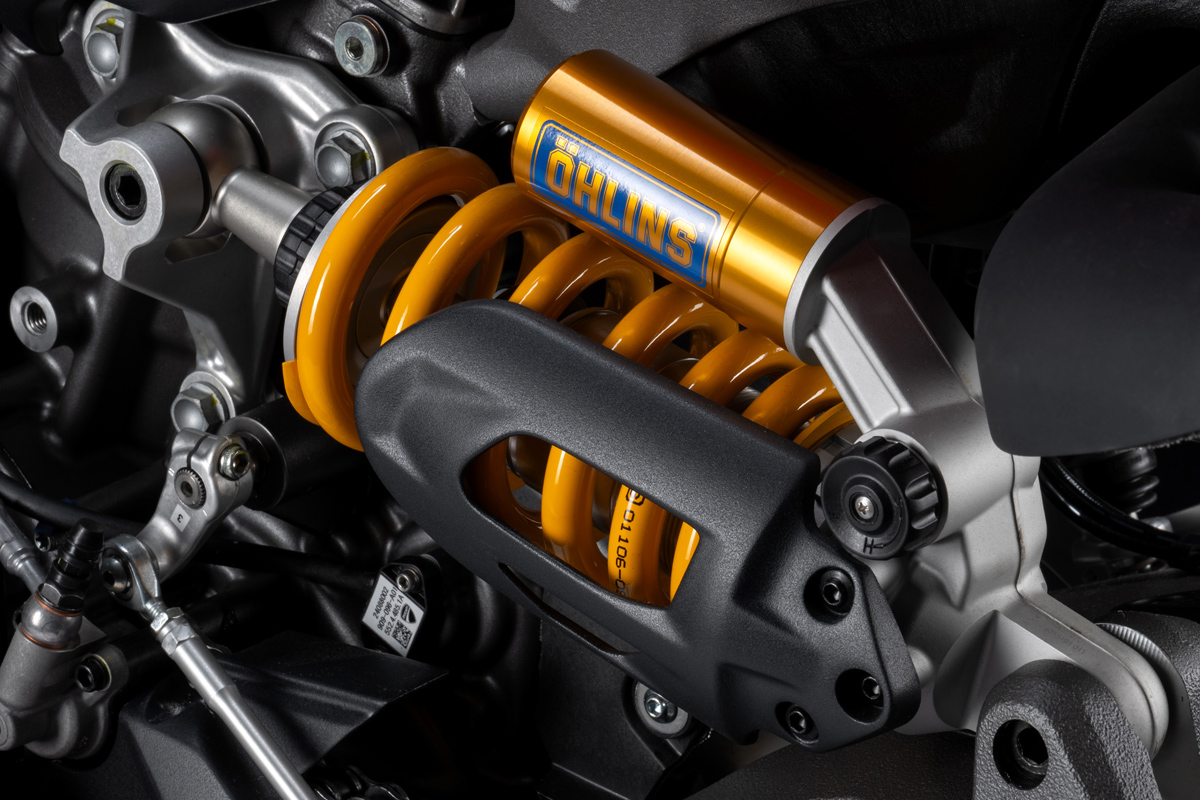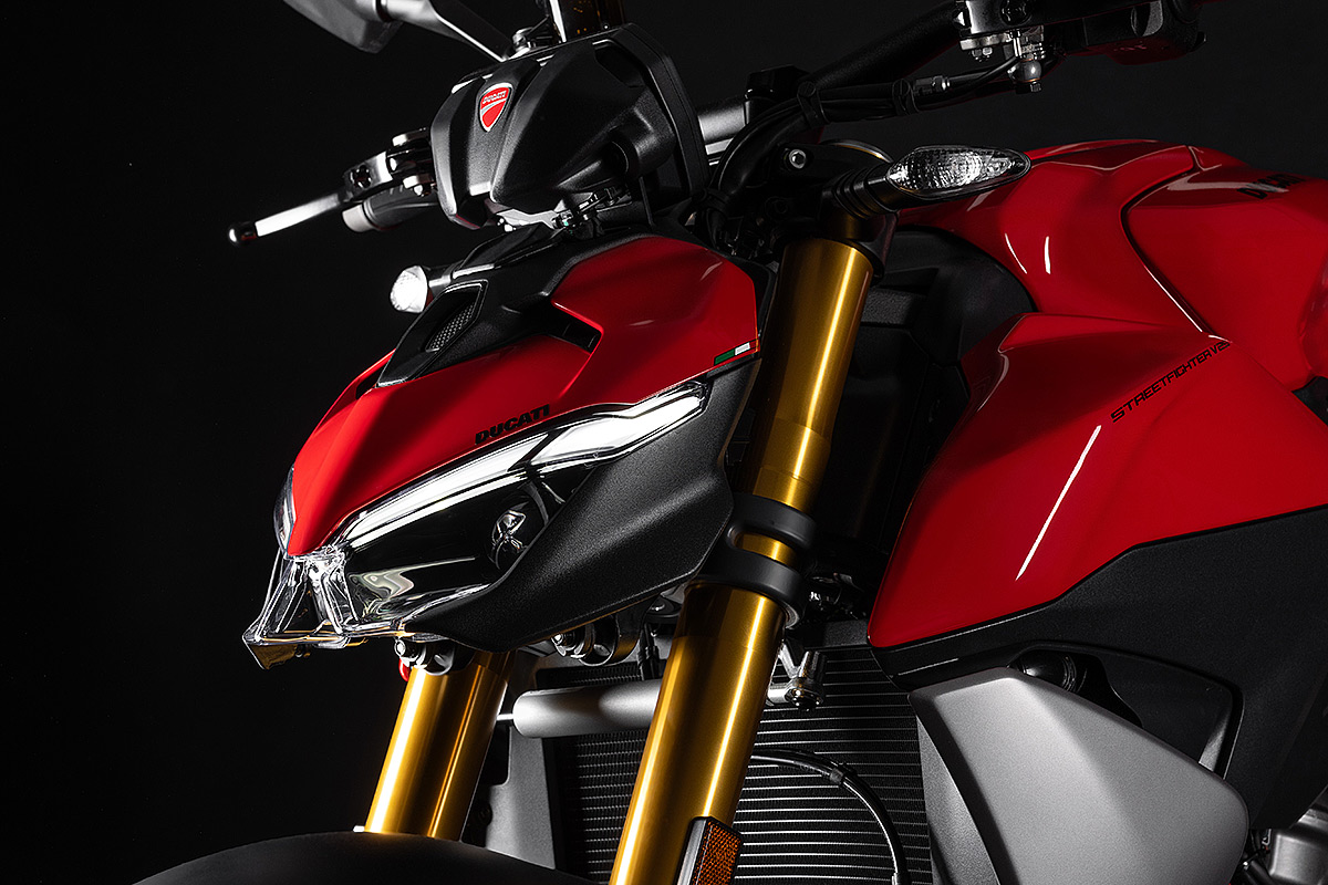 Die Ducati Streetfighter V2 S unterscheidet sich vom Basismodell durch ihre Ausstattung. Fahrwerkskomponenten vom Premium-Hersteller Öhlins, die für eine präzisere Dämpfung und herausragende Fahrstabilität sorgen, eine Lithium-Ionen-Batterie und ein noch umfangreicheres Elektronik-Paket machen sie zur besten Wahl für ambitionierte Fahrer, die auf der Straße oder auch auf der Rennstrecke Höchstleistungen erzielen möchten.